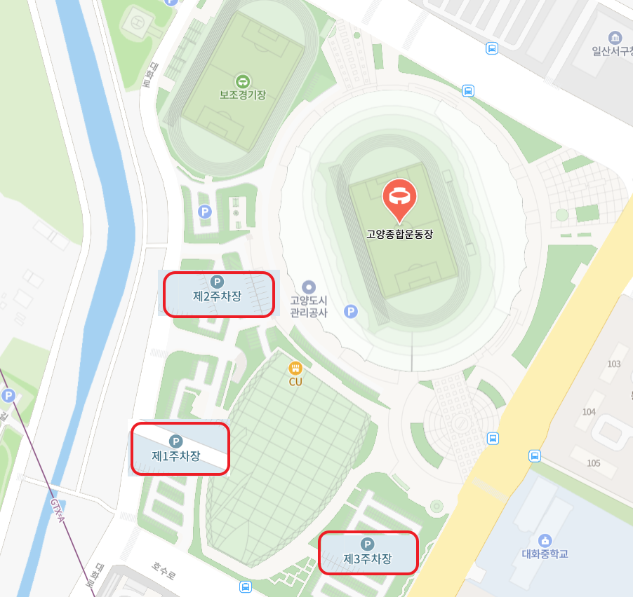 - 사전 확인: 고양종합운동장에서 주차장 자리를 먼저 확인하세요.