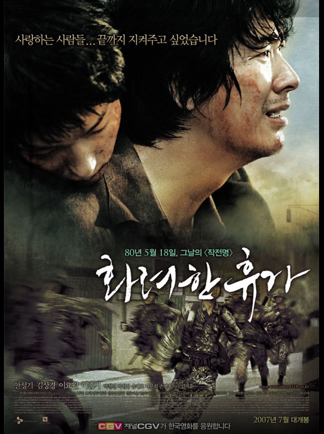 1980년 광주를 배경으로, 평범한 시민인 김명철(김상경 분)과 그의 동생 김진우(이준기 분)가 광주민주화운동에 휘말리는 이야기를 그립니다. 계엄군의 강경 진압 속에서 명철은 시민군에 합류해 목숨을 걸고 싸우며 가족과 시민들을 지키려 합니다. 영화는 비극적이지만 따뜻한 인간애를 담아냈습니다.● 특징