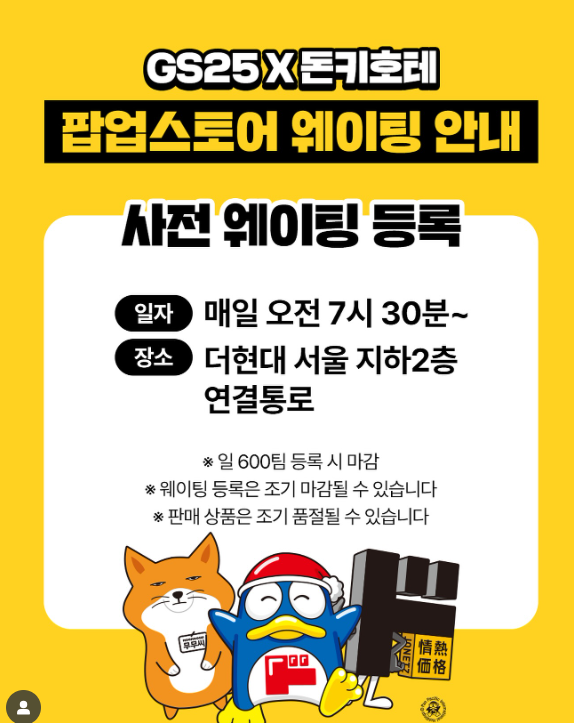 4) SNS 실시간 후기 확인: #돈키호테팝업 #더현대서울팝업 해시태그로 최신 재고 상황 확인.