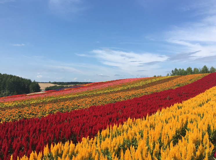 - 신록이 푸르게 펼쳐지는 계절로, 후라노와 비에이의 꽃밭이 본격적으로 아름다움을 뽐냅니다.
