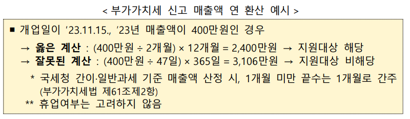 - 2022년 또는 2023년 부가가치세 신고매출액이 연 6천만 원 이하인 사업자