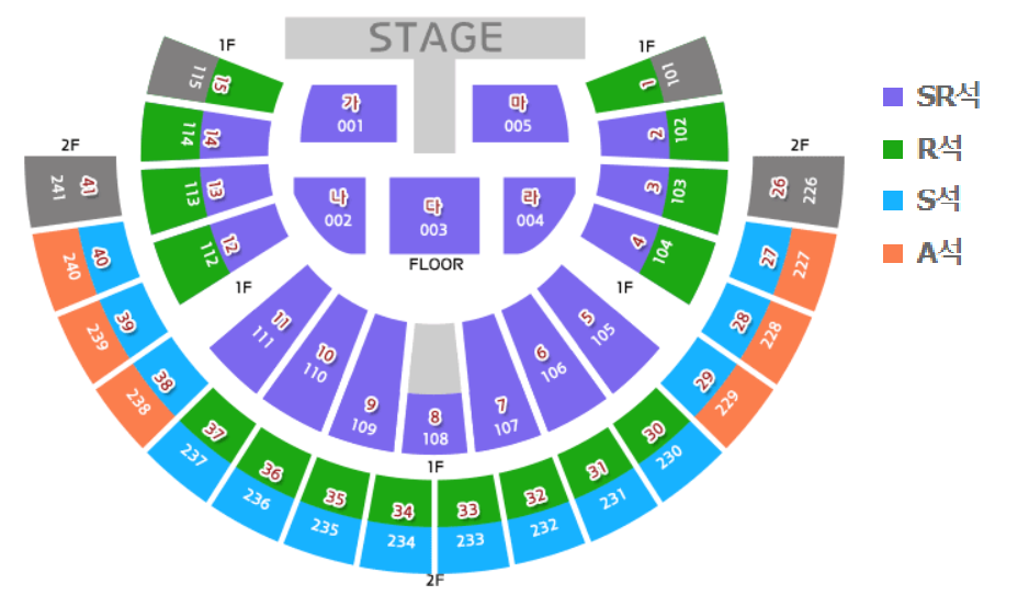 출처: 올림픽공원 홈페이지(체조경기장 좌석) 2. 지정석 (SR석, R석, S석, A석 등)
