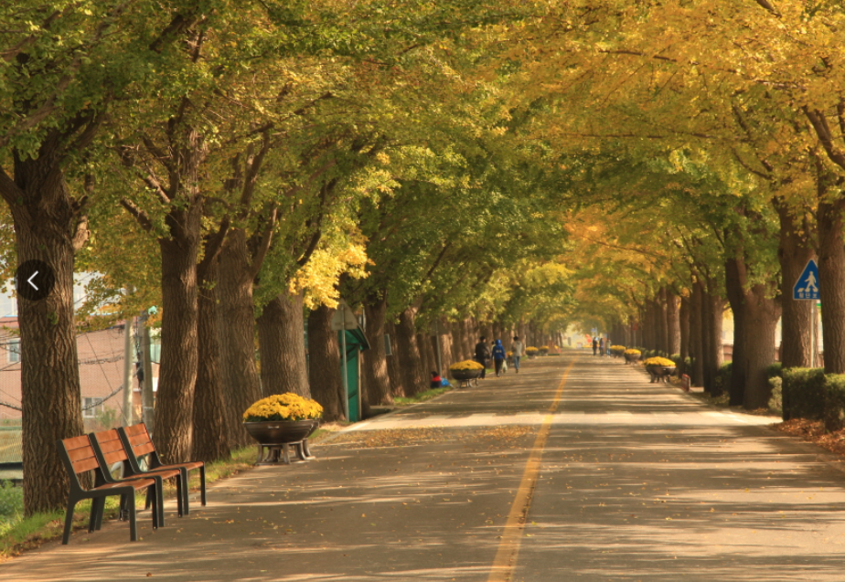 ● 전국의 아름다운 10대 가로수길 중 하나로 1.6km의 은행나무길이 장관